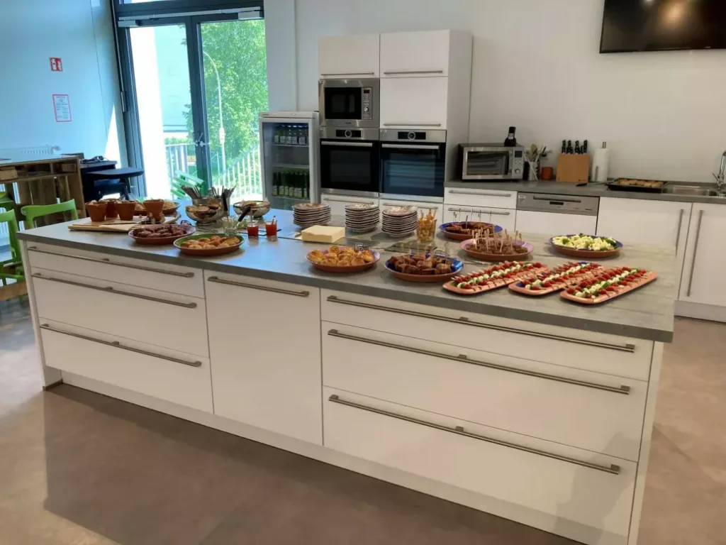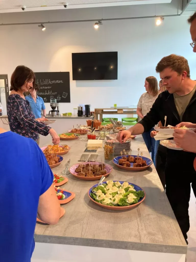 Das Team unseres Outlets „DIE FABRIK“ rund um Sibylle Rohe-Tekath hat kleine Snacks vorbereitet (natürlich aus dem SEVO!) und wir konnten die schönen Räumlichkeiten in der Kochmanufaktur nutzen, um uns einfach mal wieder zu unterhalten. Informeller Austausch, tolle Gespräche, neue und alte Gesichter als allen Bereichen des Unternehmens und nicht zuletzt ein tolles Buffet – es war ein gelungener Auftakt. Wir freuen uns jetzt schon auf die Folgeveranstaltungen!